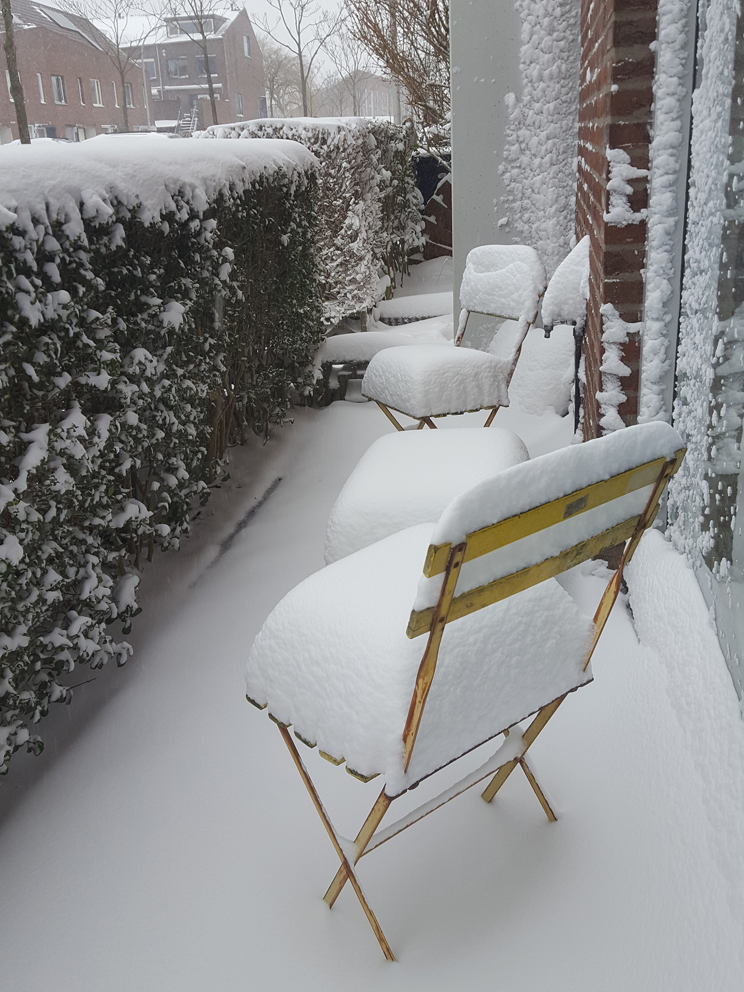 Gisteravond begon de voorspelde sneeuwval. Nog niet erg veel maar toch was de straat al wit toen ik naar bed ging.