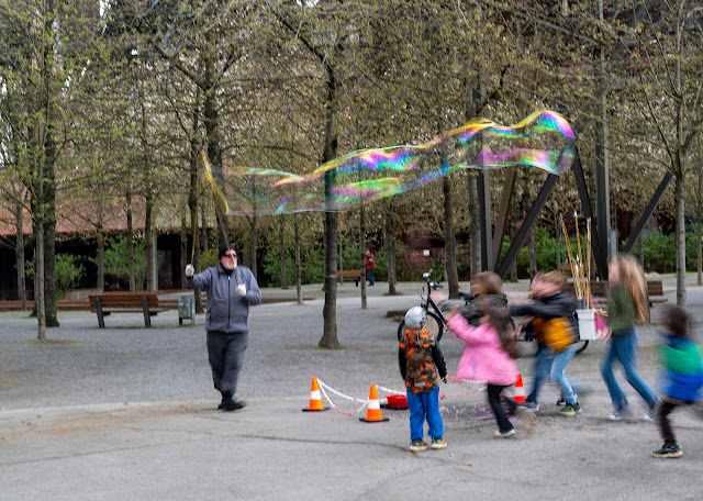 We hebben afgesproken om elkaar rond 3 uur weer te treffen om te bespreken wat we gaan doen, terug het park in om verder te fotograferen of naar het hotel.Als ik richting afgesproken plaats loop zie ik dat een man grote zeepsopbellen maakt waar kinderen veel plezier aan beleven om ze stuk te prikken.